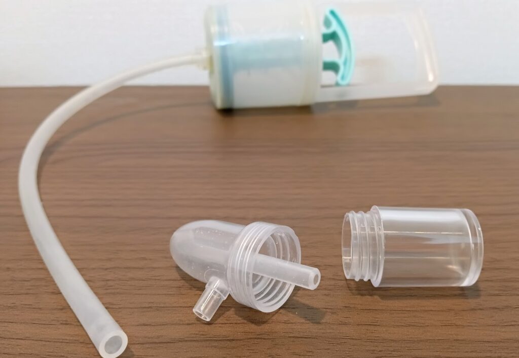 口コミに書いてあった通り、ハンドルを引くだけで鼻の奥にある鼻水まで吸引してくれます。ノズルが透明なので、取れた鼻水が見えるのはとてもスッキリした気持ちになります。